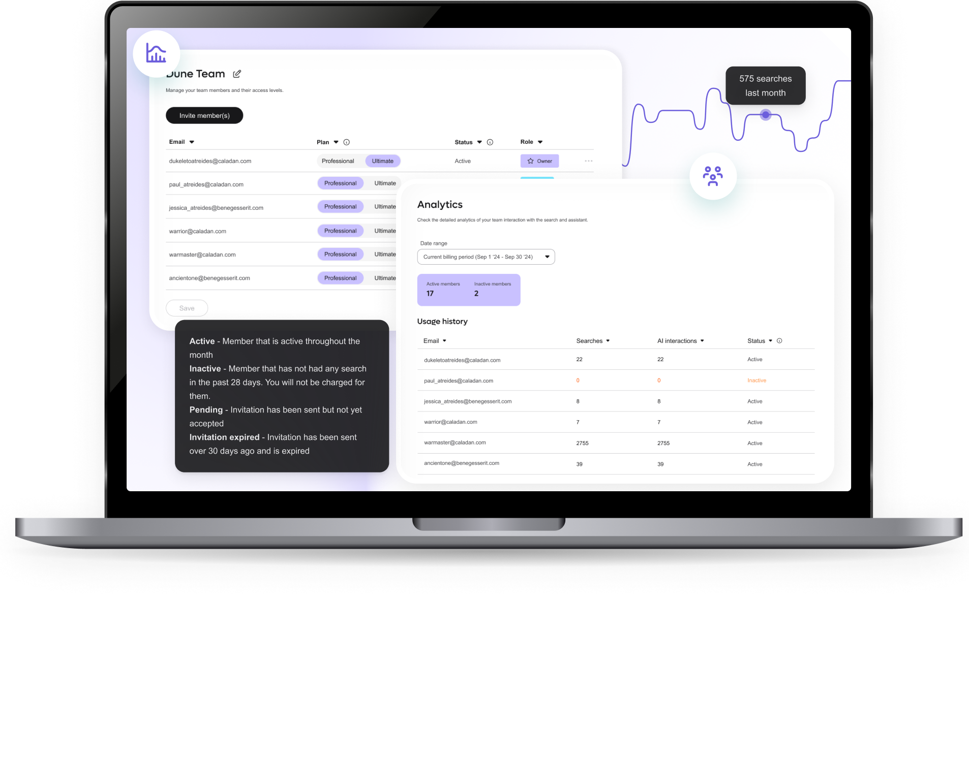 In any given billing period we only charge for active users. If team members are away, inactive or cancelled, their unused balance automatically convert to credits for future use. No waste, no complicated tiers—just straightforward per-user pricing that scales with your actual usage.